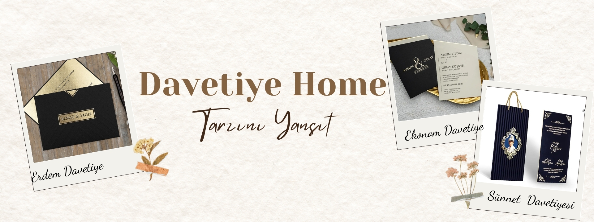 Davetiye Home, özel anlarınızı daha anlamlı kılmak için davetiye sektöründe yenilikçi ve şık çözümler sunmak amacıyla faaliyet göstermektedir. Düğün, nişan, sünnet ve tüm özel davetler için farklı tarz ve bütçelere hitap eden geniş davetiye koleksiyonumuzla hizmet veriyoruz.